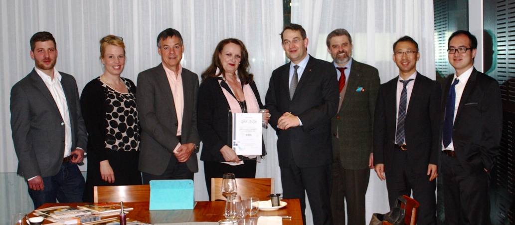 Neben den Mitgliedern aus dem Raum München, von denen Dorle Niebling-Rößle für die Quartum GmbH als Neumitglied mit ihrer Mitgliedsurkunde vom BWA- Vorstand Michael Schumann ausgezeichnet wurde, waren auch zwei Gäste auch China ins Münchner Restaurant ELLA gekommen.