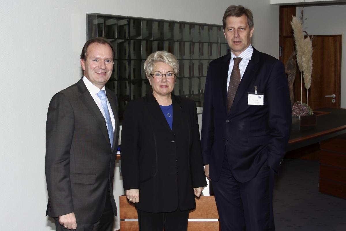 (v.l.n.r.) Michael Breuer, Präsident des Rheinischen Sparkassen- und Giroverbandes, Waltraud Osterwald, BWA Landesgeschäftsführerin NRW, Stefan Rizor, Präsident des BWA Senats NRW